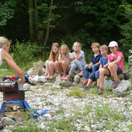 Am Ybbsufer gab es die verdiente Jause und ein kurzes Theater auf der kleinsten Steinbühne der Welt „Das Hemd des Kapitän“.